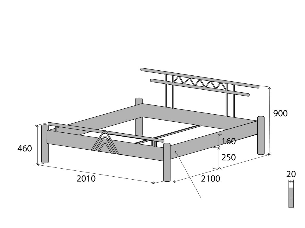 Vonkajšie rozmery postele (pre dvojlôžko s rozmerom 180×200) sú 201cm x 210cm.