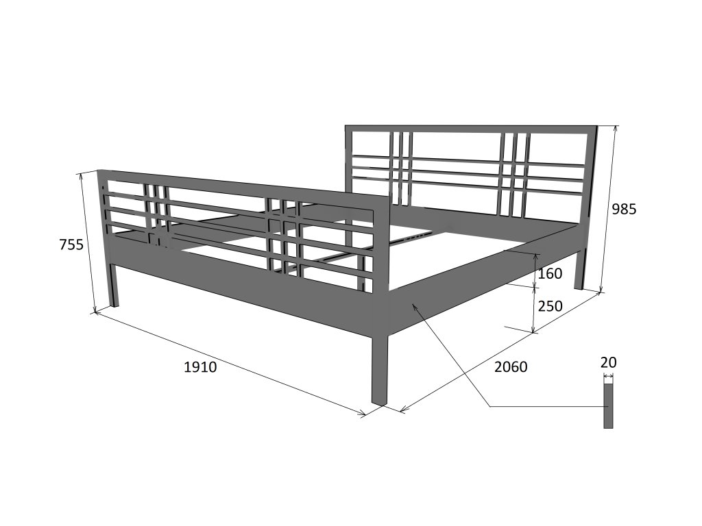 Vonkajšie rozmery postele (pre dvojlôžko s rozmerom 180×200) sú 191cm x 206cm.