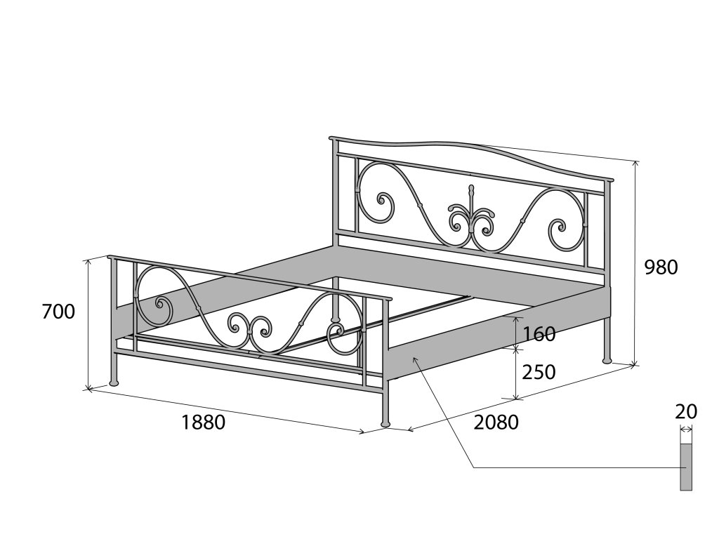 Vonkajšie rozmery postele (pre dvojlôžko s rozmerom 180×200) sú 188cm x 208cm.
