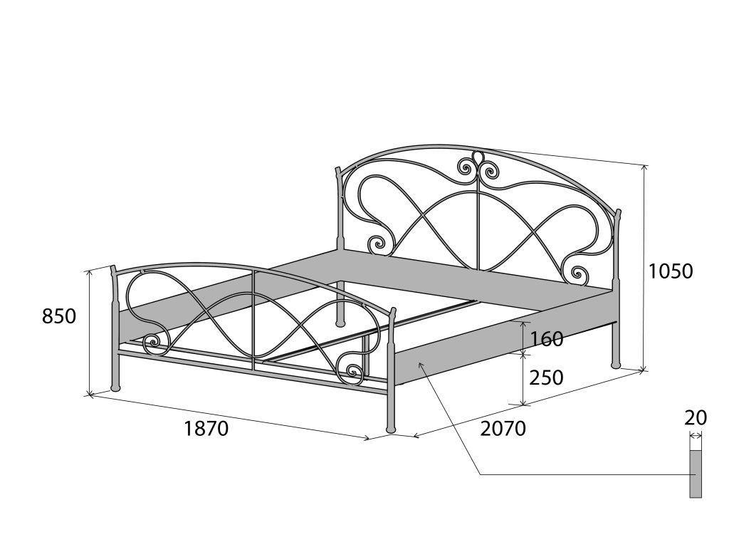 Vonkajšie rozmery postele (pre dvojlôžko s rozmerom 180×200) sú 187cm x 207cm.