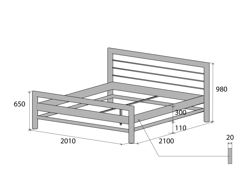 Vonkajšie rozmery postele (pre dvojlôžko s rozmerom 180×200) sú 201cm x 210cm.
