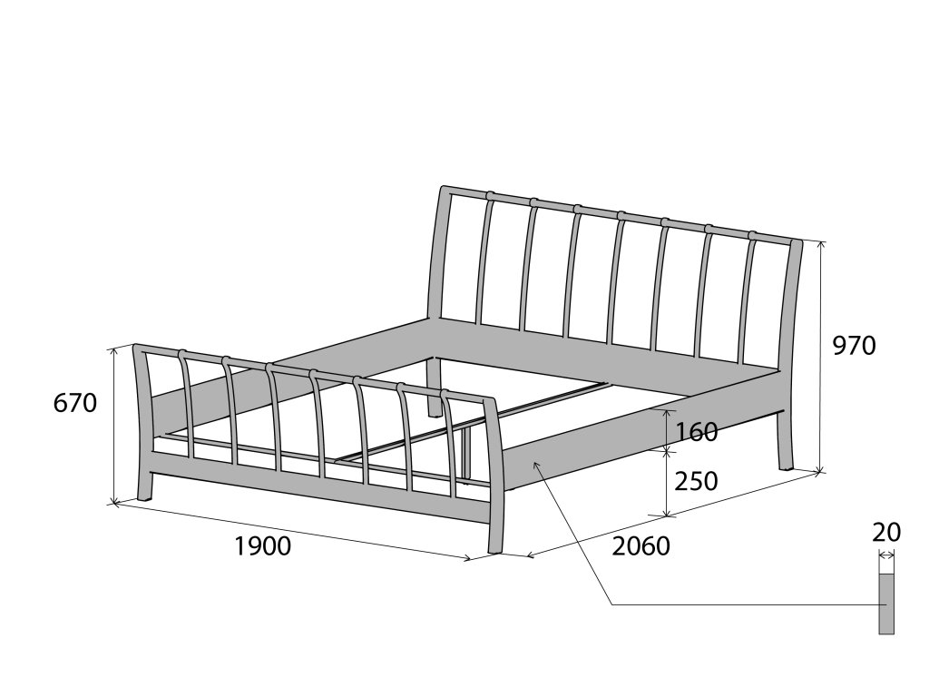 Vonkajšie rozmery postele (pre dvojlôžko s rozmerom 180×200) sú 190cm x 206cm.