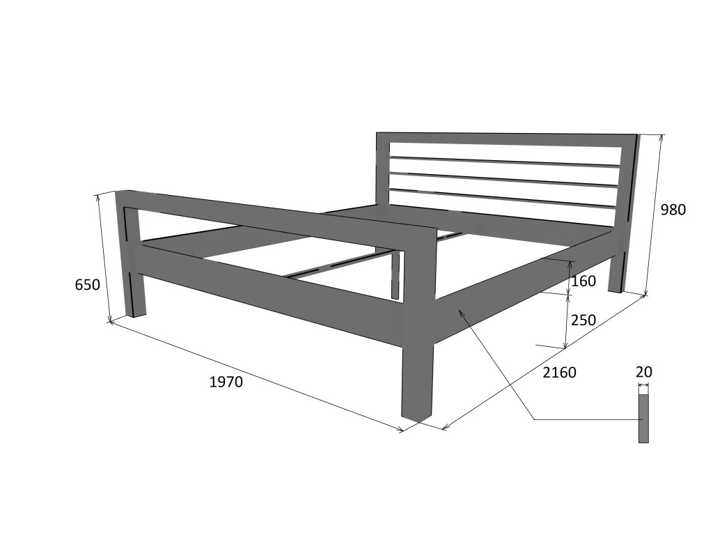 Vonkajšie rozmery postele (pre dvojlôžko s rozmerom 180×200) sú 197cm x 216cm.