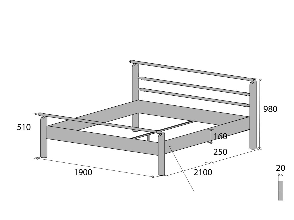 Vonkajšie rozmery postele (pre dvojlôžko s rozmerom 180×200) sú 190cm x 210cm.