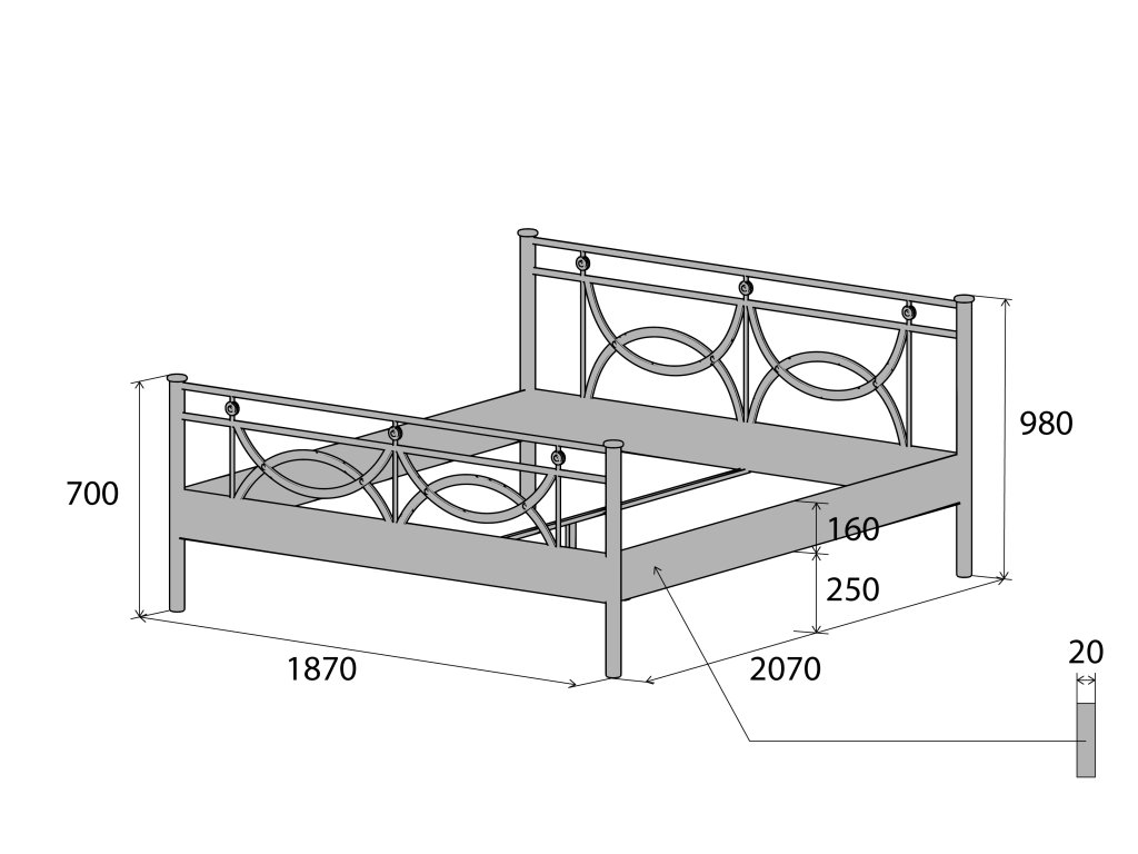 Vonkajšie rozmery postele (pre dvojlôžko s rozmerom 180×200) sú 187cm x 207cm.