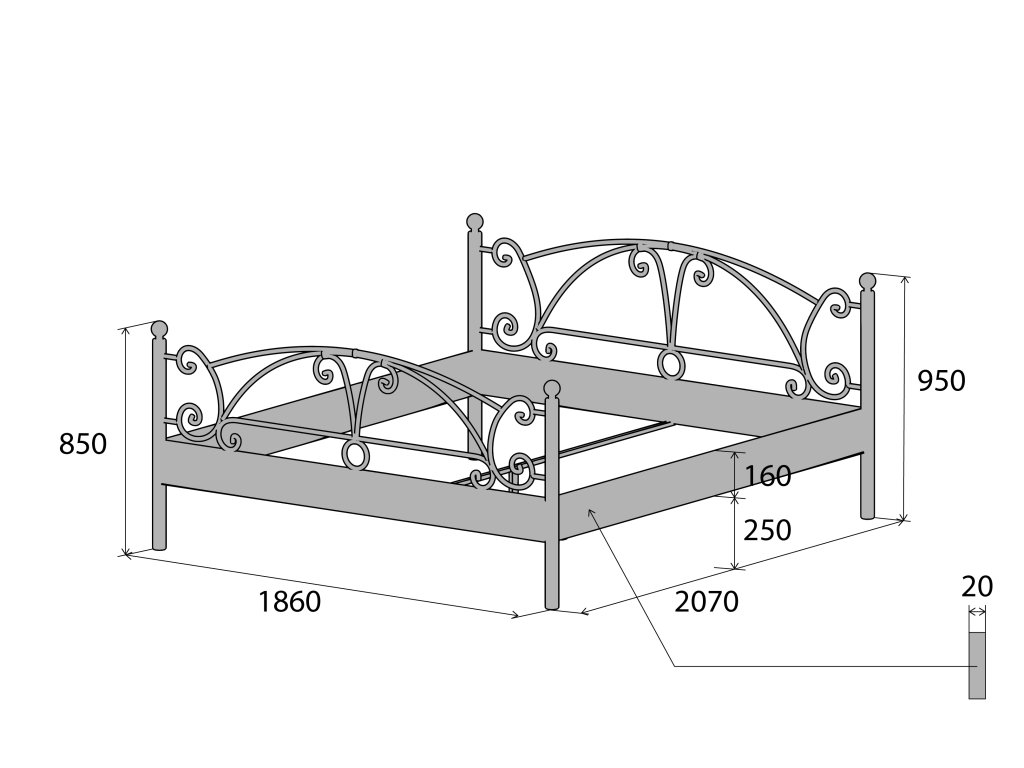 Vonkajšie rozmery postele (pre dvojlôžko s rozmerom 180×200) sú 186cm x 207cm.