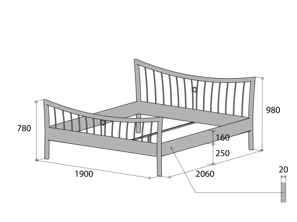 Vonkajšie rozmery postele (pre dvojlôžko s rozmerom 180×200) sú 190cm x 206cm.